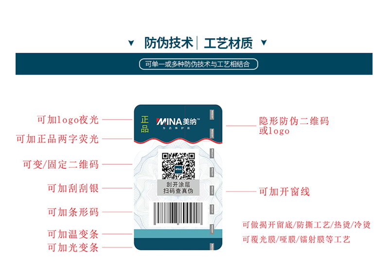 美納擁有面積約5000㎡的園林式、獨立科技園,自營大型印刷廠,擁有自主知識產(chǎn)權(quán)的量子超隱形防偽技術(shù)、免介質(zhì)防偽技術(shù)、智能防偽二維碼、防竄貨/溯源系統(tǒng)等,為各行業(yè)提供綜合性防偽、防竄貨、溯源等解決方案。公司將會根據(jù)您的需求來為您安排一對一的防偽工程師,讓您通過產(chǎn)品防偽來維護正常的市場秩序,幫助消費者購買到安全正規(guī)的商品。咨詢電話: 0769-22885497